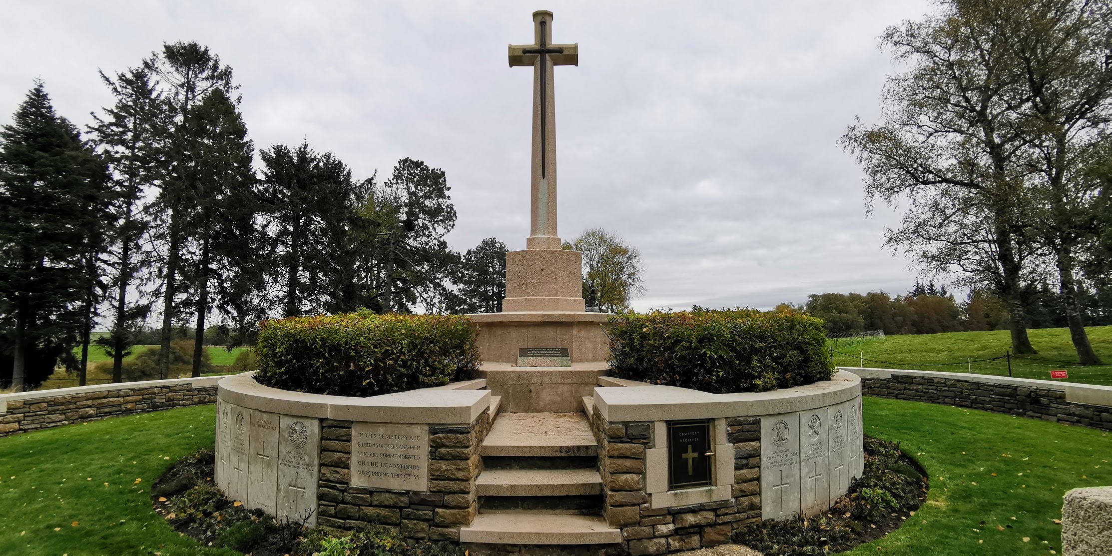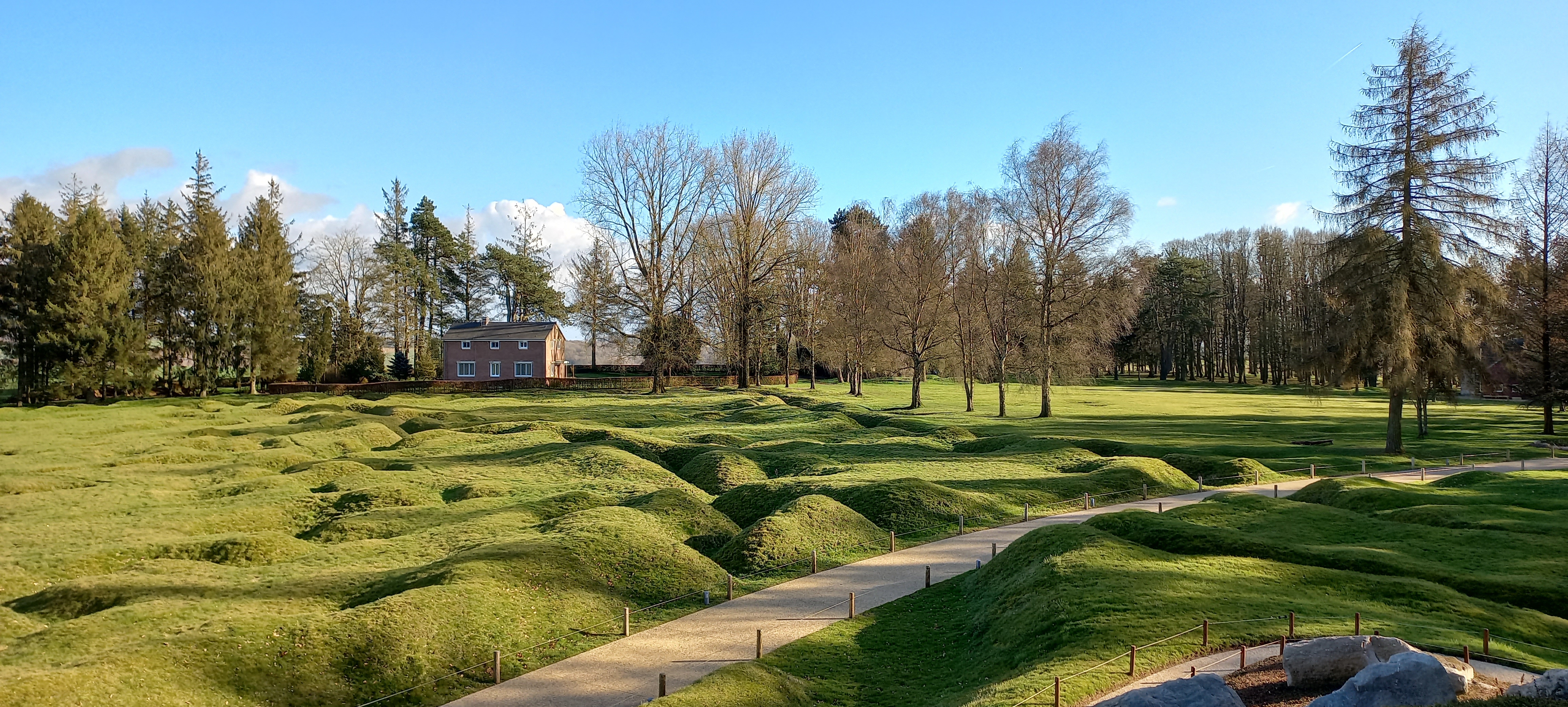 Bel endroit serein, idéal pour une courte promenade dans le contexte de la commémoration de la Première Guerre mondiale.