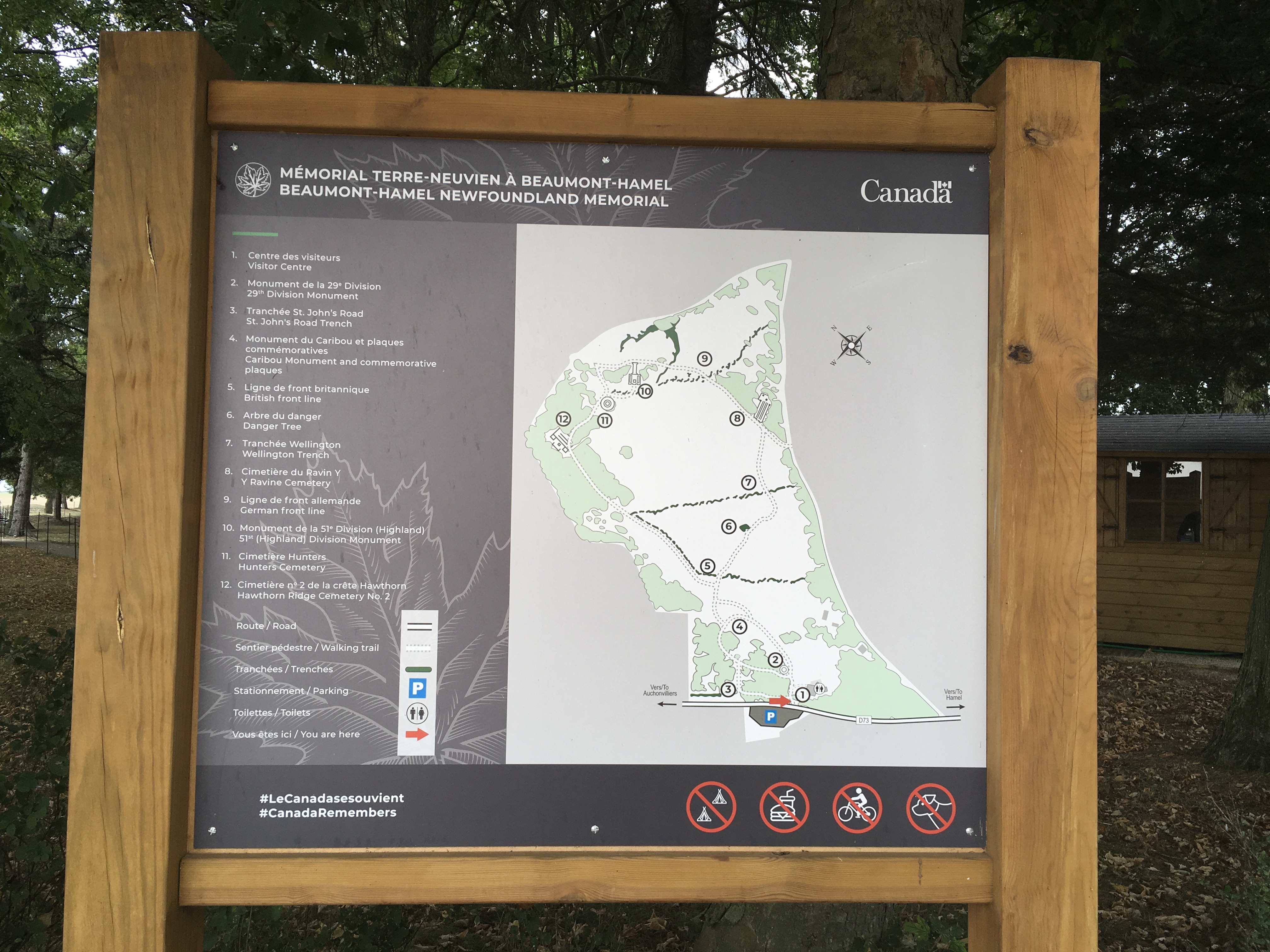 Super accueil de la part des canadiens à mettre en avant. Site très bien entretenu, explications claires, plan précis avec numerotations. Prenons en de la graine.